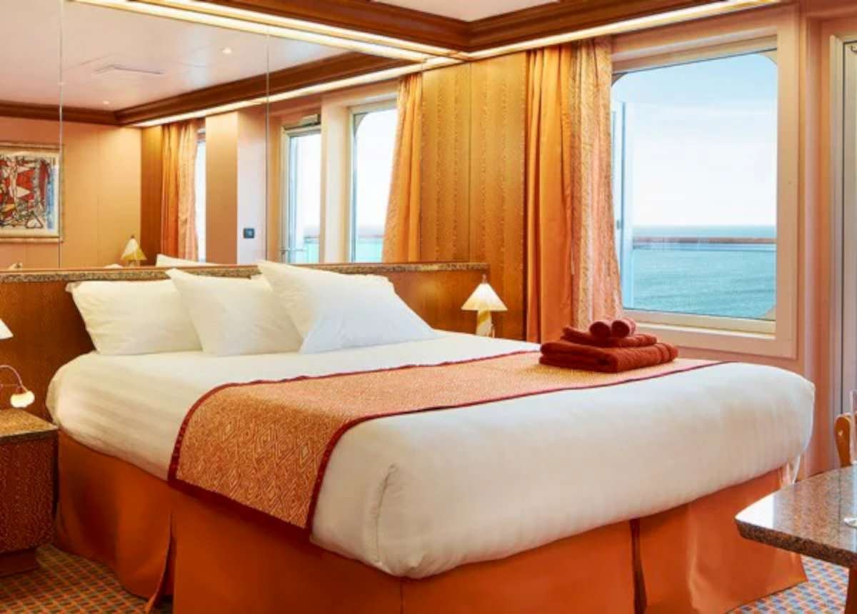 • Smeštaj u dvokrevetnim kabinama izabrane kategorije tokom krstarenja. Putnici koji to žele mogu dobiti i trokrevetne odnosno četvorokrevetne kabine iste kategorije, ukoliko su u momentu rezervacije putovanja dostupne,