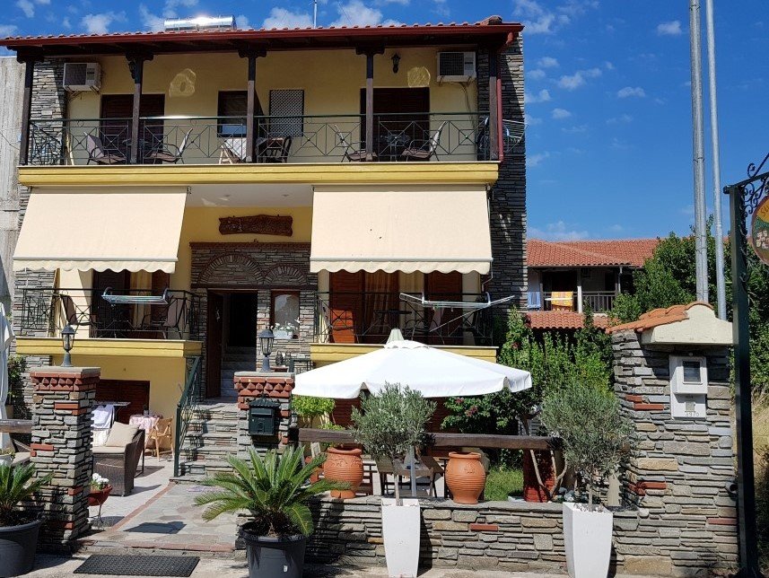 Vila Demi se nalazi na blagom uzvišenju u živopisnom ambijentu, okružena maslinama i zelenilom. Sama pozicija na kojoj se vila nalazi pruža mogućnost jedinstvenog pogleda, na dve prelepe uvale i plaže Alikes i Kalopigado, zbog kojih mnogima zastaje dah. Sa terase vile, uz prvu jutarnju kafu, uživaćete u izlasku sunca i odsjaju plavog Egejskog mora, a u večernjim satima uz čašu odabranog grčkog vina ispratiti zalazak sunca. Na oko 100m od vile, na početku plaže Alikes, nalazi se najpoznatiji beach bar na ostrvu - Savana, gde možete uz konzumaciju pića da koristite ležaljke i suncobrane. Na oko 150m se nalazi auto kamp u kome je mini market, a na oko 200m se nalazi prva taverna sa tradicionalnim specijalitetima grčke kuhinje. Studiji i apartmani su smešteni u prizemlju i na spratu, prostrani i elegantno dekorisani, predviđeni za smeštaj 3-4 osobe. Sadržaj vile upotpunjuje prostrano dvorište sa nekoliko roštilja koji su na usluzi gostima, kao i parking za automobile. Za sezonu leto 2019. studiji i apartmani su kompletno renovirani.