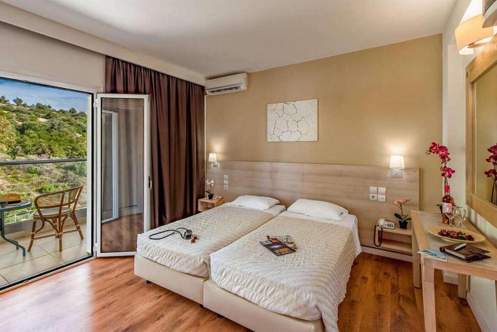 Blizu Atine, ali ipak idilično mesto za odmor na ostrvu, potpuno renovirani Eretria Hotel & Spa Resort nudi elegantne apartmane sa beskrajnim pogledom na more i elegantne bungalove sa privatnim bazenom koji su dizajnirani za parove, prijatelje i porodice. Bujni vrtovi i panoramski pogledi na prirodne pejzaže, veliki, raskošni bazen i izuzetne usluge hrane i pića dizajnirani su da vam ponude vrhunske udobnosti i užitke grčke filoksenije. Amfiteatralno izgrađen oko velikog bazena, Eretria Hotel & Spa Resort se nalazi između priobalnih gradova Eretrije i Amarintosa u centralnoj Eviji. U roku od manje od sat vremena vožnje od Atine, naći ćete se kako se prepuštate ohrabrujućim pogledima na prostrane pejzaže i Egejsko more svuda okolo.