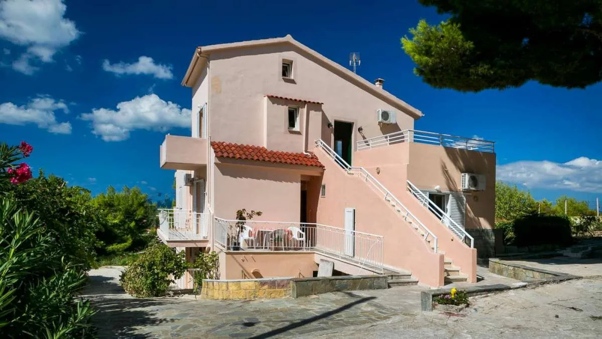 Lokacija: Nalazi se na oko 300 m od mora i na oko 50 m od glavne ulice u Lasiju. Opis: Kompletno renovirana za leto 2025. godine. Vila raspolaže dvokrevetnim i trokrevetnim apartmanima, koji se nalaze na prizemlju i na I spratu vile. Takođe raspolaže četvorokrevetnim dupleks apartmanima i četvorokrevetnim dupleks apartmanima sa pomoćnim ležajem koji se nalaze u prizemlju. Svaka smeštajna jedinica poseduje kompletno opremljenu čajnu kuhinju, kupatilo (tuš/WC), TV i balkon. Apartmani raspolažu klima uređajem čije se korišćenje doplaćuje na licu mesta (6 € dnevno po smeštajnoj jedinici). Ova doplata nije obavezna. Vila ima besplatan Wi-Fi internet, peškire i parking.