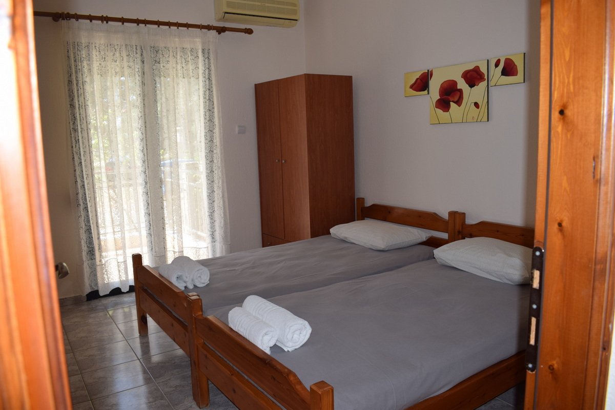 Sigo apartmani se nalaze na oko 250m od plaže. U ponudi su komforni četvorokrevetni apartmani koji se nalaze na prvom spratu. Apartmani imaju TV, klima uređaj čije je korišćenje uključeno u cenu, a kuhinje imaju šporet sa rernom.