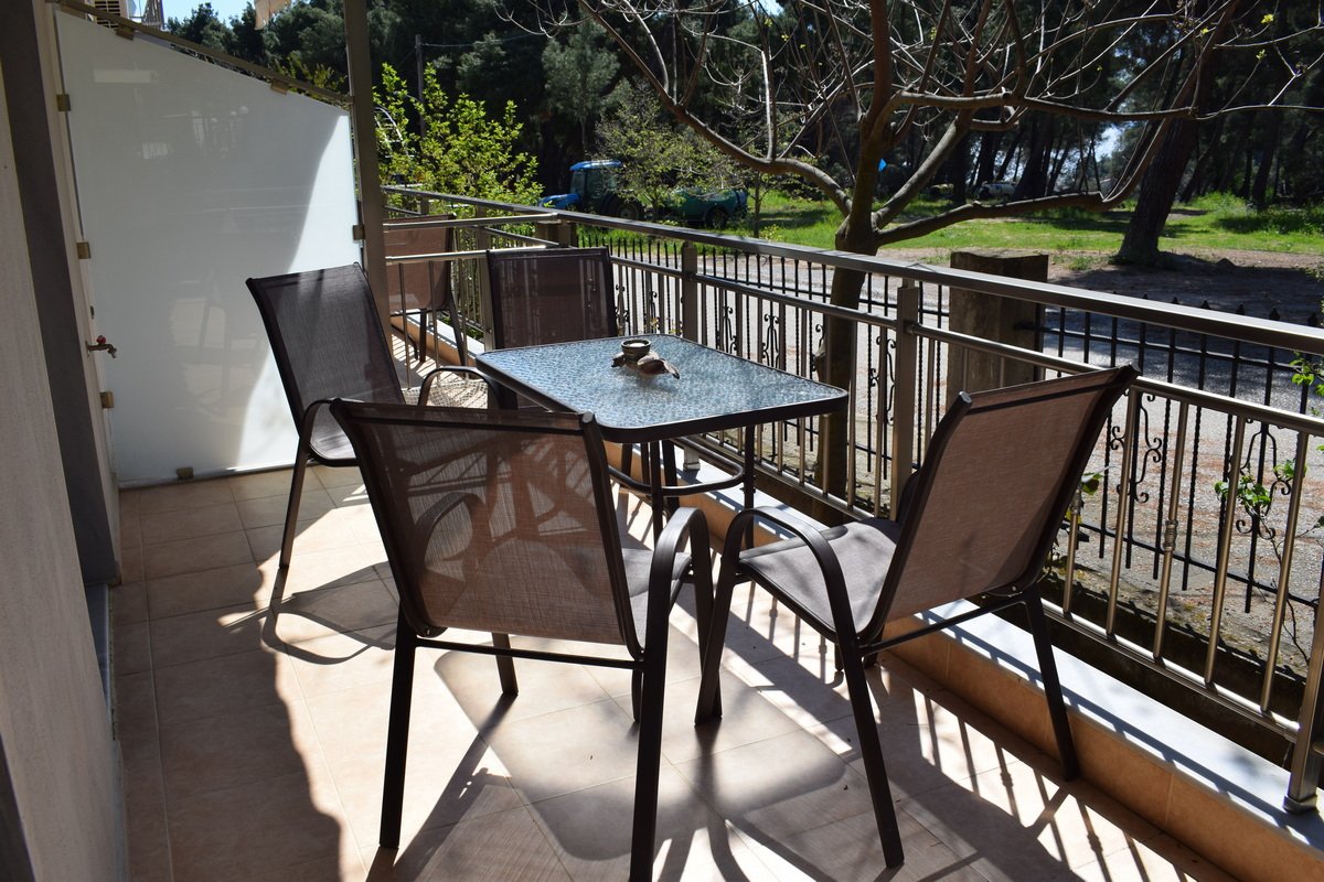 Kuća Georgiadis se nalazi u mirnom delu Metamorfozisa u relativnoj blizini centra i na oko 450m od plaže. Okružena je zelenilom i ima dvorište koje je na raspolaganju gostima. U ponudi su apartmani u visokom prizemlju i na prvom spratu. Kuća ima TV, signal za besplatno korišćenje kao i klima uređaj čije je korišćenje uključeno u cenu.