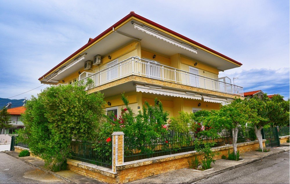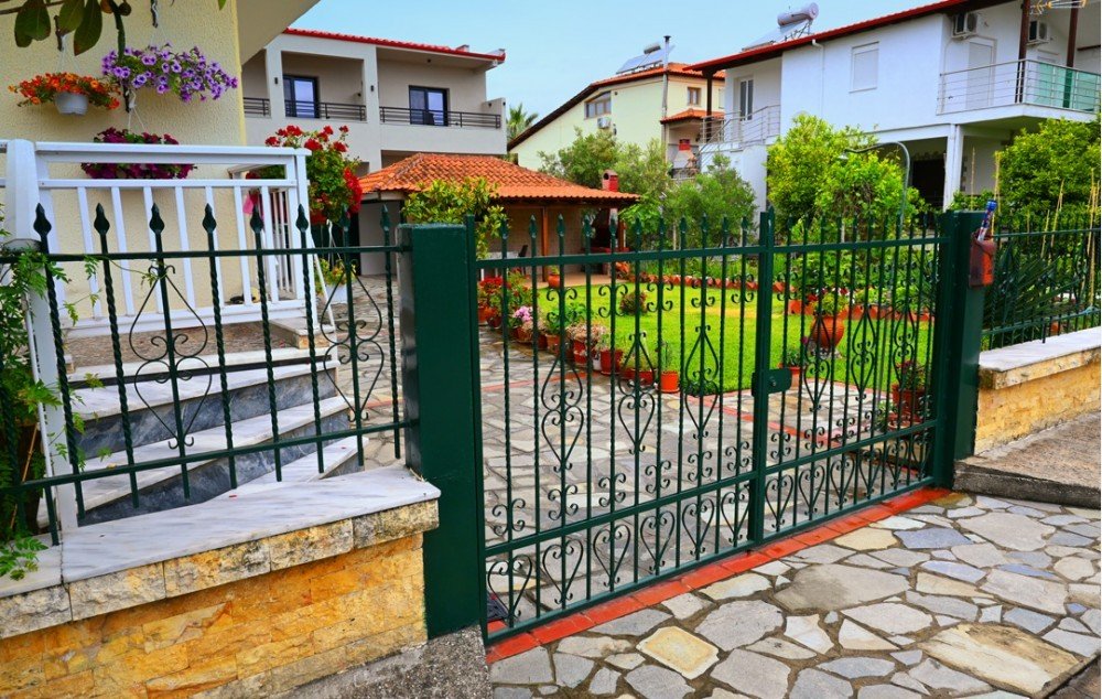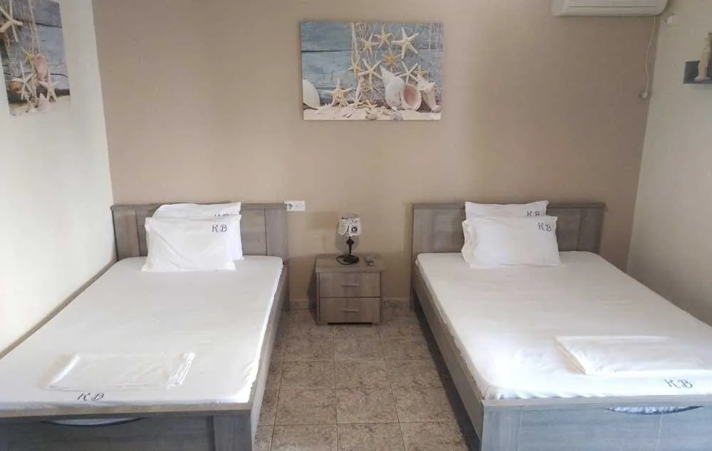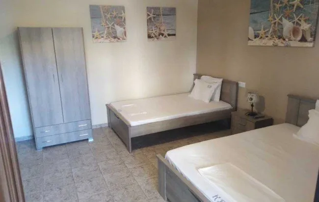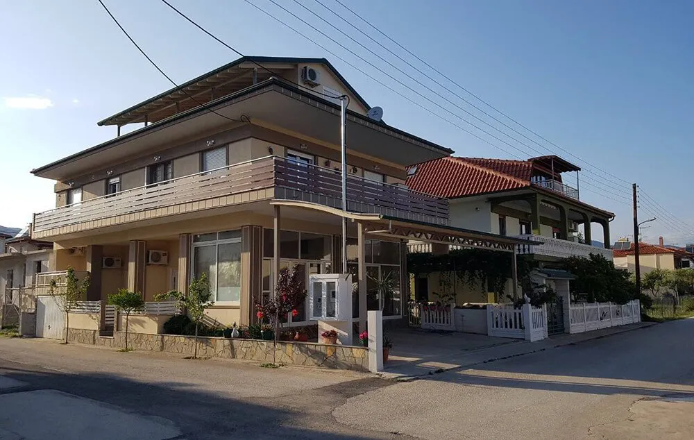 Lokacija: nedaleko od centra. Udaljenost od plaže: 80m. Struktura: 1/2 studio, 1/4 studio, 1/4 apartman, 1/5 apartman. Opremljenost: kupatilo, terasa, čajnu kuhinja (osnovno posuđe, frižiderom, rešoom sa dve ringle), televizor. Pogled: pogled ulica, pogled planina i dvorište. Spratnost: I sprat. Klima uređaj: uz doplatu - 5 € po danu. Peškiri: ne. Posteljina: da - menja se na 5 dana (ista se ostavljaju na spratu vile i gosti ih sami menjaju). Parking: ne - vila Gerakina ne poseduje sopstveni parking (postoji mogućnost parkiranja u neposrednoj blizini).