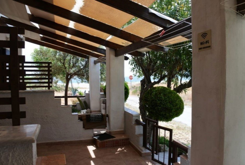 Udaljenost od plaže: na plaži. Struktura: 1/2 STD. Opremljenost: kuhinja (osnovna opremljenost posuđem za predviđen broj osoba, rešo sa dve ringle, frižider), kupatilo, terasa sa garniturom za sedenje. Pogled: bočni pogled na more. Spratnost: visoko prizemlje. Klima-uređaj: 6 € dnevno. Peškiri: ne. Posteljina: da, menja se na 5 dana boravka. Parking: ne. Postoji mogućnost parkiranja u neposrednoj blizini, na ulici.