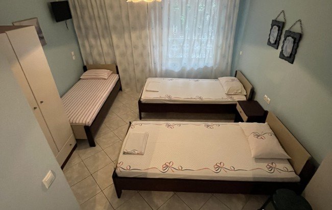 Udaljenost od plaže: 90m. Struktura: 1/2 studio, 1/3 studio, 1/4 apartman, 1/4 duplex i 1/5 duplex. Opremljenost :Svaka smeštajna jedinica u svom sastavu ima opremljenu kuhinju (posuđe i pribor za jelo prema broju kreveta), kupatilo, klima uređaj (uz doplatu na licu mesta prema cenama iz programa putovanja). Pogled: ulica. Spratnost: prizemlje. I sprat i II sprat. Klima uređaj: da - uz doplatu na licu mesta. Peškiri: ne. Posteljina: da. WI-FI: internet u vilama nije namenjen profesionalnoj upotrebi, a jačina signala, brzina i kvalitet protoka i povezivanja kao i stabilnost mreže zavise isključivo od provajdera, tehničkih mogućnosti u samom letovalištu i regiji i drugih faktora. Postoji mogućnost da internet signal bude dostupan od 01.06.2026. Parking: ne. Dodatne karakteristike: vila na odličnoj lokaciji.
