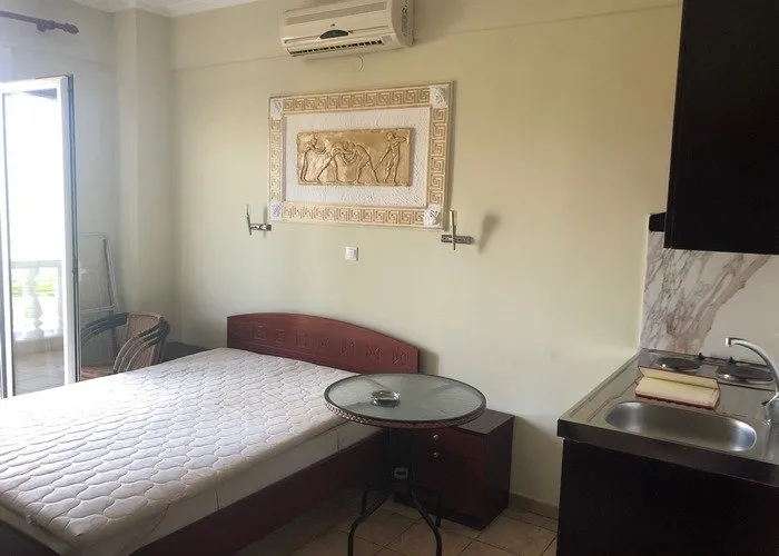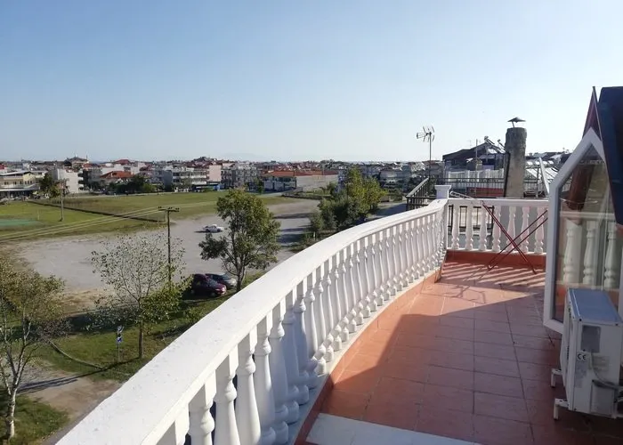 Vila se nalazi na adresi Elefteriou Venizelou 35 Paralia, preko puta drugog velikog parking u Paraliji i pored teniskih i košarkaških terena. Udaljena je od plaže oko 300m , od crkve i centra oko 500m a od Lidla oko 60m. Vila u svom sastavu ima 1/2, 1/3 i 1/4 studije koji su smešteni u prizemlju, na prvom, drugom, trećem i četvrtom spratu. Vila poseduje lift i WiFi . Klima uređaj je dostupan gostima u svim smeštajnim jedinicama (uz doplatu) osim u economy studijima u prizemlju.