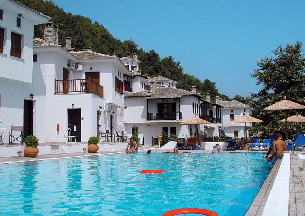 Ovaj hotel sa 4 zvezdice izgrađen je u tradicionalnom stilu i okružen bujnim zelenilom planine Pelion. Smešten je na 6 km od plaže Milopotamos, 3 km od mesta Tsagarada. Sadržaj: Recepcija, lobi, wifi, parking, restoran, bar, snek bar, otvoreni bazen, ležaljke i suncobrani oko bazena, TV sala, dečje igralište, sala za konferencije... Sve sobe su opremljene klima uređajem, mini barom , TV, WIFI, i imaju kupatilo i terasu ili balkon.