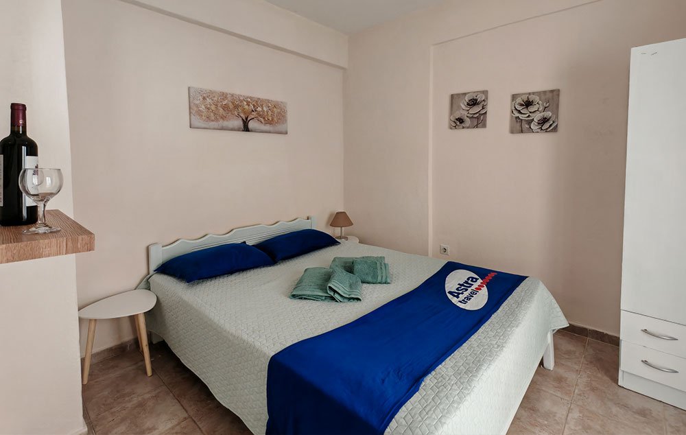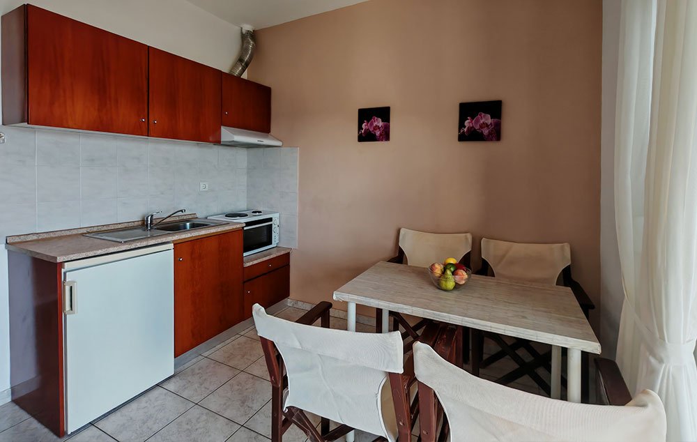 Vila Kortesa nalazi se u neposrednoj blizini šetališta i plaže u mestu Psakudija. Na udaljenosti od oko 200m od mora, kuća je okružena zelenilom. U ponudi su apartmani, od kojih se dva nalaze u niskom prizemlju, a preostala dva u visokom prizemlju. Sobe imaju pogled na dvorište. Kuća ima TV, WiFi i klima uređajima čije je korišćenje uključeno u cenu.