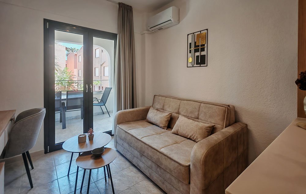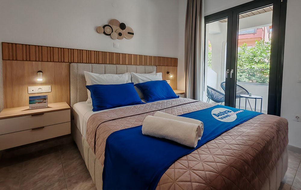 Kuća Kortesa nalazi se u neposrednoj blizini šetališta i plaže u mestu Psakudija. Na udaljenosti od oko 200m od mora, kuća je okružena zelenilom. U ponudi su apartmani, od kojih se dva nalaze u niskom prizemlju, a preostala dva u visokom prizemlju. Sobe imaju pogled na dvorište. Kuća ima TV, WiFi i klima uređajima čije je korišćenje uključeno u cenu.