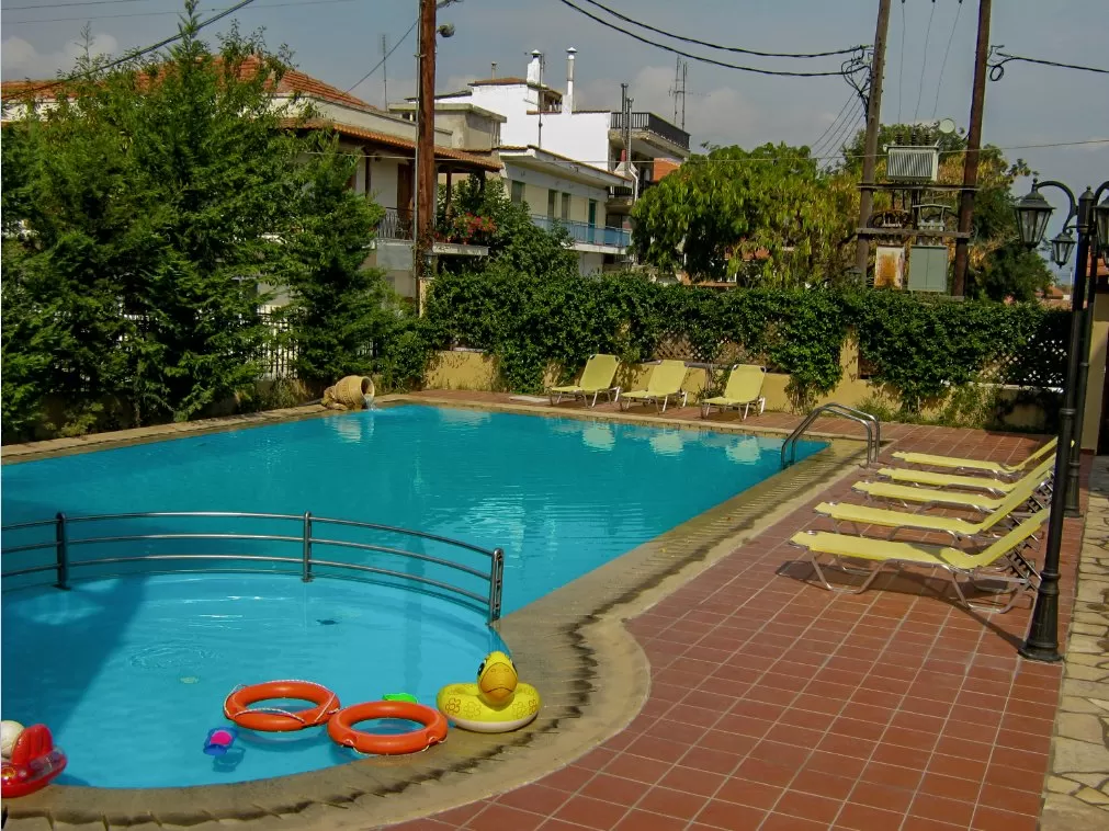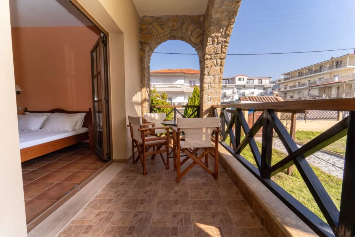 Aparthotel Antonico ušuškan je u samom srcu Stavrosa. Smešten između dve fantastične plaže – gradske plaže i plaže platana, najposećenije plaže u Stavrosu i okolini zbog svoje lepote i prirodnog hlada koji pravi šuma platana koja raste na samoj plaži. Apartmani Atoniko udaljeni su oko 200 m od mora, a oko 100 m od centra Stavrosa. Najbliži supermarket nalazi se na 100 m od ovog objekta, mada, obzirom na blizinu centra gosti ovog objekta imaju vrlo širok izbor marketa, restorana, taverni, poslastičarnica… Objekat Atoniko važi za jedan od najlepših i najluksuznijih objekata u Stavrosu. Sastoji se od dvokrevetnih, trokrevetnih, četvorokrevetnih studija, kao i šestokrevetnog apartmana raspoređenih na visokom prizemlju i na prvom spratu. Sve smeštajne jedinice su prostrane, vrlo lepo i moderno opremljene. Svaka poseduje kuhinju sa svim neophodnim inventarom (mini- električni rešo sa dve ringle, posuđe, pribor za jelo), kupatilo, terasu sa garniturom za sedenje, kao i centralni klima uređaj. Apartmani Atoniko imaju veliki bazen sa ograđenim delom za decu, ležaljkama i suncobranima, veliko igralište za decu, prelep vrt, sopstveni parking i recepciju sa lobijem…