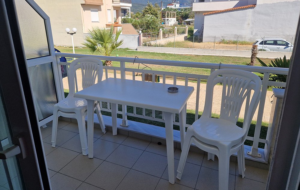 Vila je udaljena 100m od plaže. Nalazi se u centru letovališta. Poseduje četvorokrevetne mezonete. Svaka od mezoneta ima opremljen kuhinjski deo, kupatilo/wc, terasu, TV, WiFi internet i klima uređaj (uz doplatu na licu mesta od 5 € po jedinici). U neposrednoj blizini se nalazi super market, a vila ima sopstveni parking i roštilj, koji je na raspolaganju gostima.