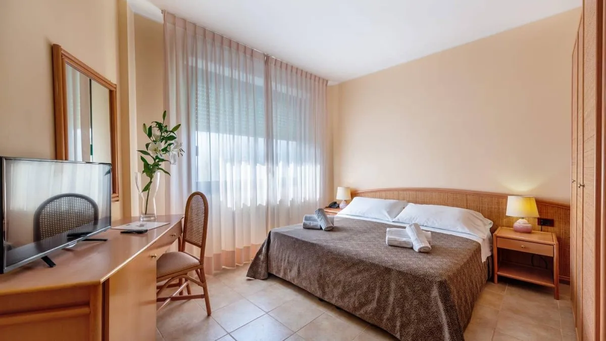 Lokacija: Hotel Rina nalazi se u mirnom delu grada Alghera, na samo nekoliko minuta hoda od prelepe peščane plaže Maria Pia (oko 100m). Smešten u drugoj liniji od mora, hotel pruža idealan spoj odmora i gradske atmosfere. Do istorijskog centra Alghera, sa kaldrmisanim ulicama, restoranima i barovima, stiže se laganom šetnjom uz obalu ili lokalnim prevozom. Aerodrom Alghero-Fertilia udaljen je oko 10 km, što hotel čini lako dostupnim kako za kraći city break, tako i za letovanje. Plaža: Hotel se nalazi u neposrednoj blizini poznate peščane plaže Maria Pia, jedne od najlepših u okolini Alghera. Plaža je prekrivena sitnim, svetlim peskom, sa postepenim ulaskom u more, što je čini pogodnom i za porodice sa decom. More je kristalno čisto, tirkizne boje, a borova šuma u zaleđu pruža prirodan hlad i prijatnu atmosferu tokom toplih letnjih dana. Na raspolaganju su ležaljke i suncobrani (uz doplatu), kao i barovi i kafići duž obale, idealni za osveženje uz pogled na more. Sobe: Sve sobe su opremljene klima uređajem, kupatilom sa tušem ili kadom i fenom za kosu, TV-om, besplatnim Wi-Fi internetom, sefom i mini frižiderom. Većina soba ima balkon. Hotelski sadržaj: Gostima su na raspolaganju recepcija 24h, restoran, bar, spoljašnji bazen sa ležaljkama i suncobranima, lift, kao i besplatan Wi-Fi u celom hotelu. Parking je dostupan uz doplatu i prema raspoloživosti. U blizini hotela nalaze se brojni restorani, kafići, prodavnice, kao i šetalište uz more. Usluga: Noćenje sa doručkom (kontinentalni doručak).