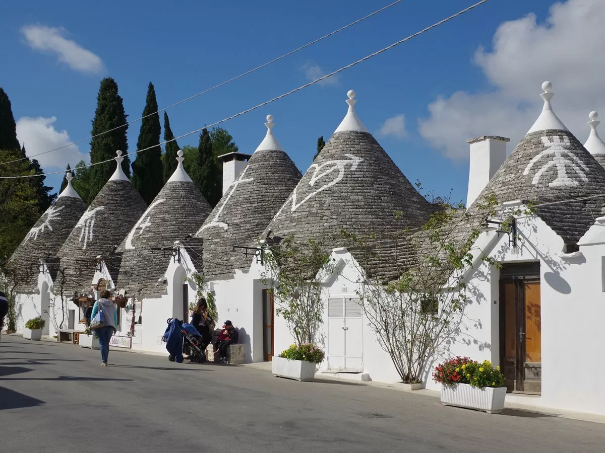 Doručak. Slobodno vreme ili fakultativna poseta jednom neverovatno neobičnom gradiću pod zaštitom UNESCO-a Alberobellu, koji predstavlja sinonim turizma za regiju Apulija. Najveća atrakcija su neodoljive kućice sa kupastim krovovima koje lokalno stanovništvo naziva „truli“ kojih ima samo u ovoj regiji, tačnije u oblasti Merđe dei Truli, i koje podsećaju na kućice iz bajke. Preko hiljadu ovakvih neobičnih, malih, okruglih kućica sa kupastim krovovima koji se zovu ”pinakolo” jedinstven su primer praistorijske gradnje bez vezivnog materijala. Slobodno vreme za uživanje u Alberobellu. Nastavak ka šarmantnom gradiću Marina Franka koja lezi u srcu doline Itri. Ovaj grad se diči spletom kaldrmisanih uličica koje ulepšavaju balkoni sa cvećem i predivni trgovi sa baroknim palatama. Šetnja starim jezgrom: Porta di Santo Stefano, Palazzo Ducale, gradska većnica, bazilika San Martino. Slobodno vreme. Nastavljamo izlet i stižemo u Ostuni, drevni gradić opasan zidinama sa panoramskim pogledom na Jadransko more. Lokalno poznat kao La Città Bianca tj. beli grad, Ostuni se nalazi na listama najlepših gradića Apulije. Obilazak grada. Slobodno vreme do povratka u hotel. Noćenje.