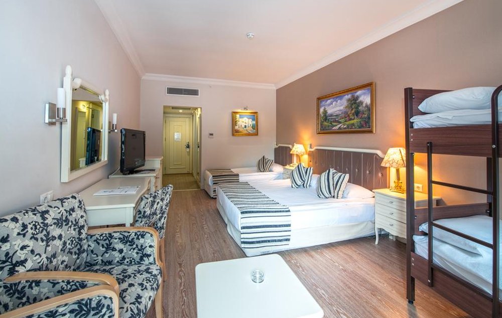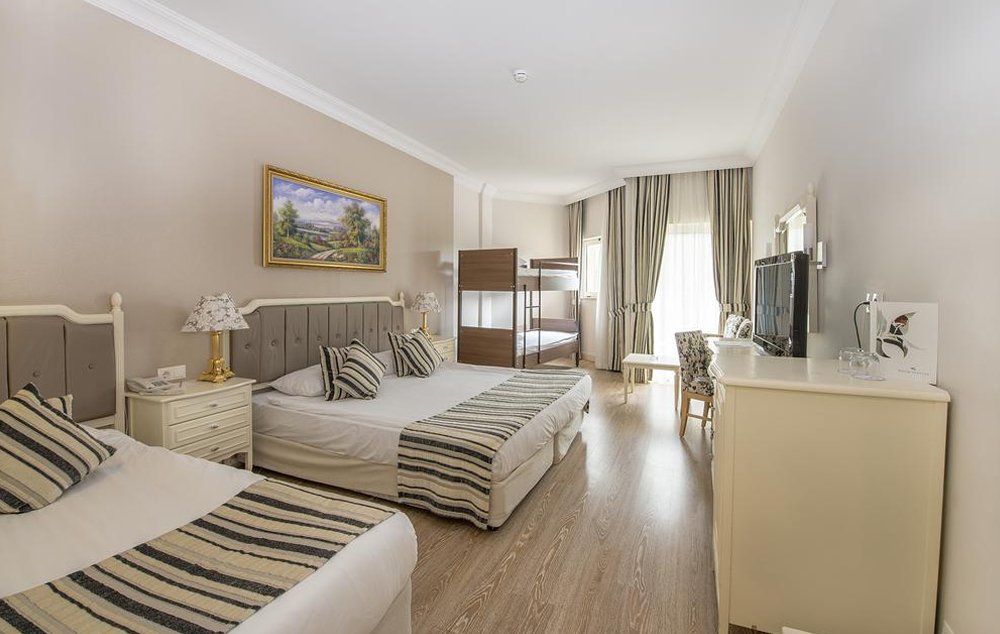 Nalazi se 6 km od Beleka, od aerodroma je udaljen 30 km. Peščana hotelska plaža je udaljena 400 m, besplatan shuttle bus je dostupan do recepcije Sueno Deluxe Belek hotela koji se nalazi preko puta. Ležaljke, suncobrani peškiri i bar na plaži su besplatni za goste hotela. Hotelski sadržaj: Recepcija, glavni restoran, a la carte restoran, snack restoran, 4 bara, otvoreni bazen za odrasle, dečiji bazen, unutrašnji bazen, SPA centar, 2 teniska terena, pilates, stoni tenis, gimnastika, aerobik, košarka, stoni tenis, bilijar. Wifi je besplatan u celom objektu. Sve sobe imaju: Kupatilo sa tušem/wc, fen za kosu, centralnu klimu, LCD TV, telefon, sef (besplatno), mini bar, ketler za čaj i kafu, balkon, wifi.